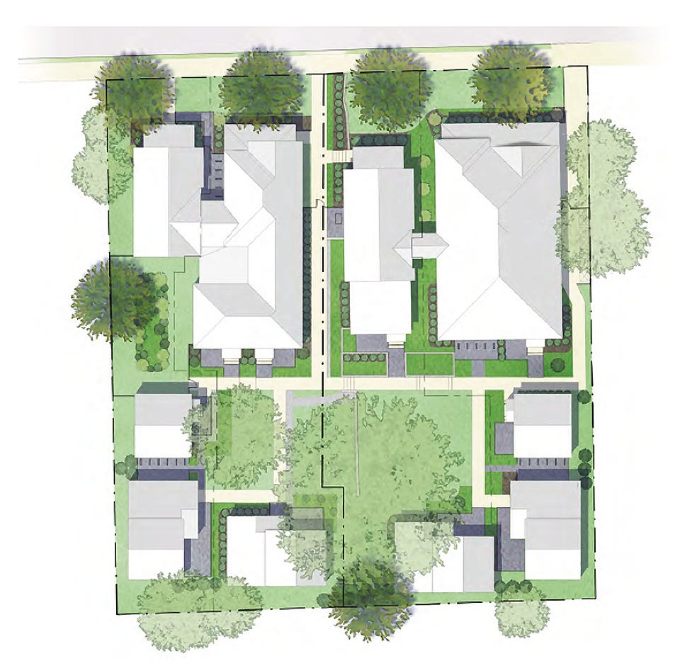Could we create a by-right cottage court development that incorporated existing housing and trees—and hit the rent levels targeted?