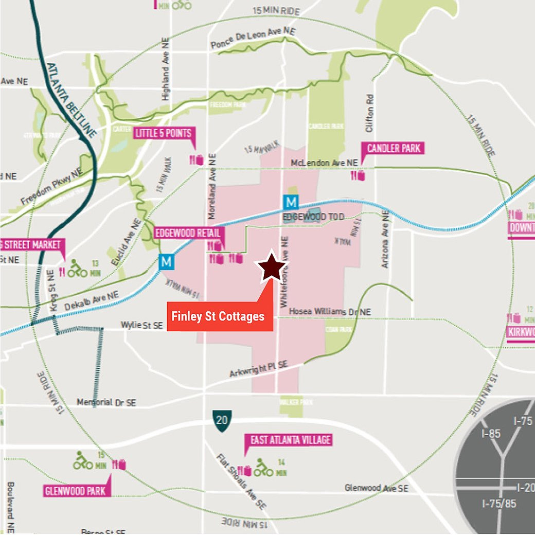 How does Finley Street stack up? The Cottages are located just outside of Downtown Atlanta and within walking distance of two MARTA stations, multiple bus stops, and the Edgewood Retail District.** Not only that—nearby bike paths allow for a 15- to 20-minute ride to Ponce City Market, and the ride to Trader Joe’s comes in at 20-25 minutes. The location of this project allows residents the freedoms needed for a car-free lifestyle. These freedoms are vital, and although they are rare throughout the South, they are not unique to Atlanta. Similar developments can succeed anywhere the right neighborhood ingredients are present. Let’s look at what those conditions are, how they are intertwined, and how they contribute to affordability.