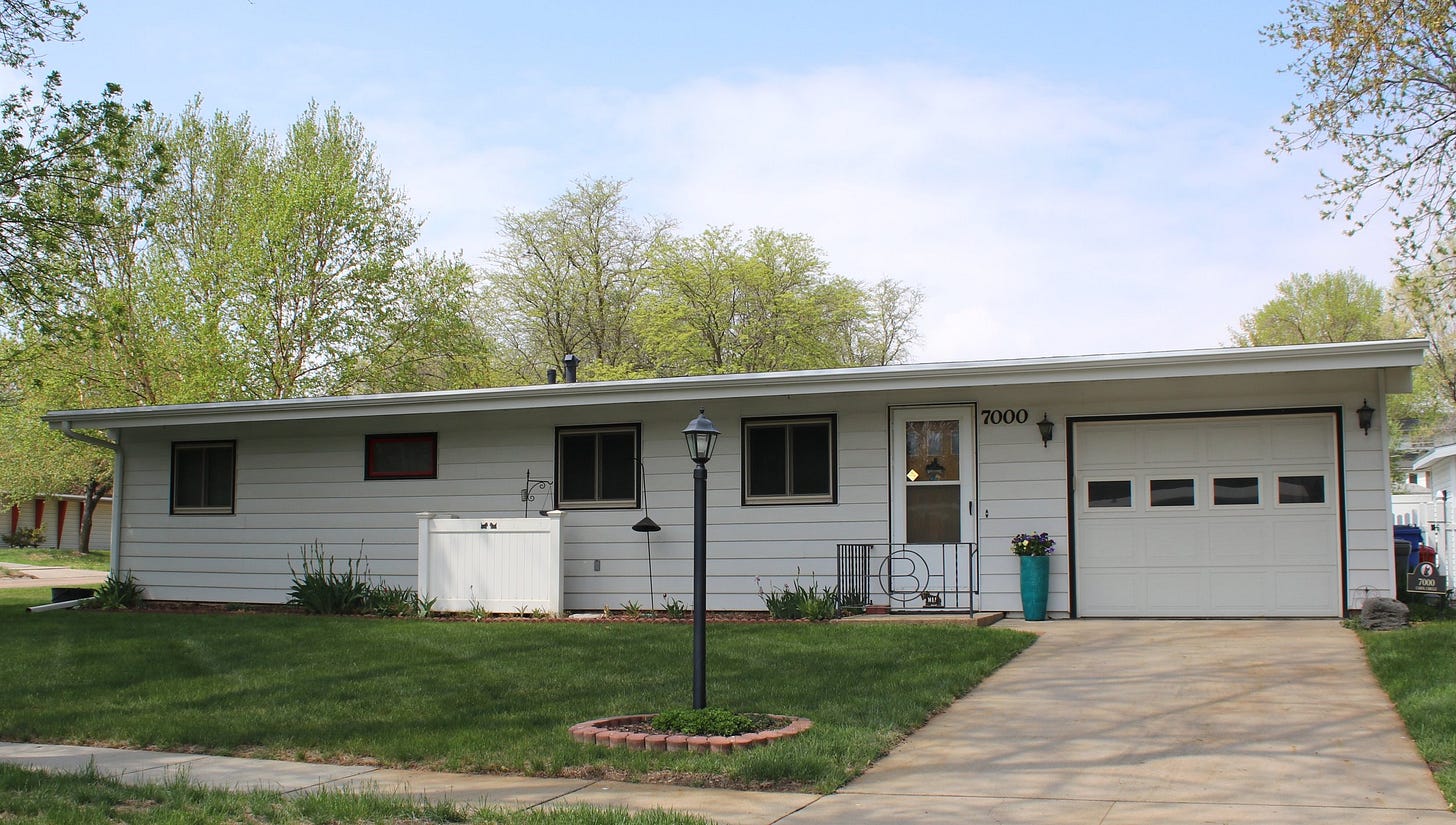 Throughout Lincoln, Nebraska, you find many simple, low-cost ranch homes built by Ervin Peterson, founder of Peterson Construction Company. His son, the late Bob Peterson, was my adviser in designing and building affordable homes—he always knew how to resolve a problem or do a pricey thing cheaply. His dad’s homes required just $25 down and an agreement to do some work, such as laying floor tile and painting. This made buying a house a snap, and many people did so. Peterson constructed about 2,500 of these homes across the city.