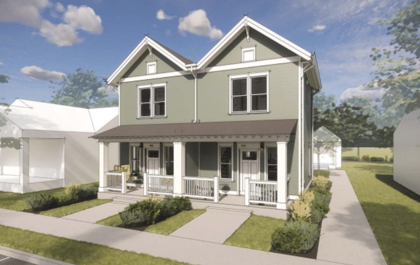 This one can also be a duplex option, again a great variation for a setting where a larger house would be appropriate. I also like the bigger porch on the duplex option, which feels practical while being attractive.